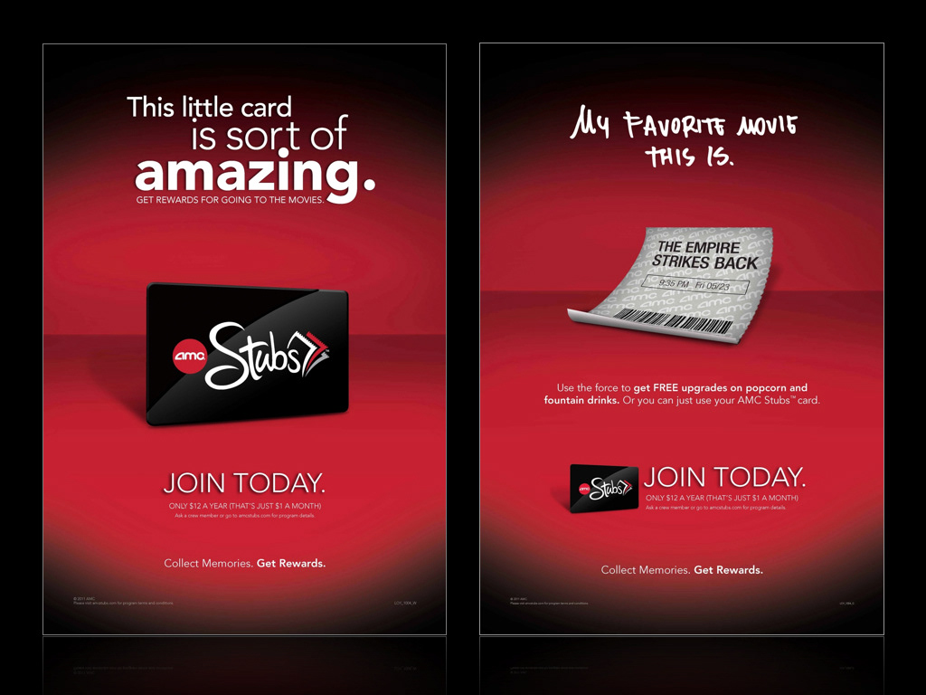 Developed the rewards program for AMC Theatres called AMC Stubs. New branding.